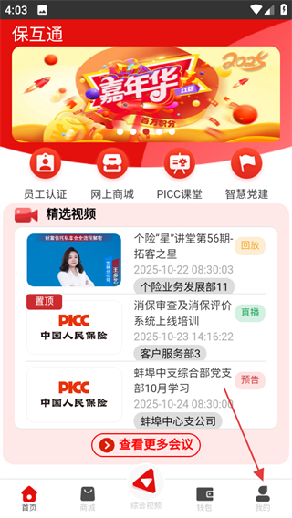 1、打開保互通,點(diǎn)擊頁(yè)面右下角我的,可進(jìn)入個(gè)人中心頁(yè)面。