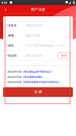 3、在用戶注冊(cè)頁(yè)面,填寫信息,同意協(xié)議后點(diǎn)擊注冊(cè)可完成賬號(hào)注冊(cè)。