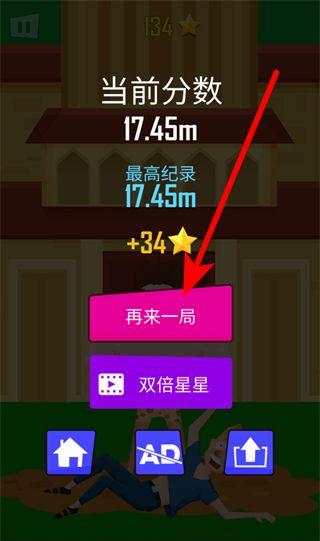 4、每次拋射結(jié)束后可選擇再來一局繼續(xù)挑戰(zhàn),也可參與雙倍星星活動獲取更多資源,還能返回主頁或進行其他操作。