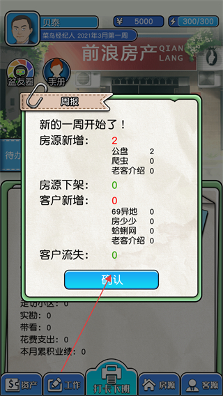 1、每周開始時會有周報提示,顯示房源、客戶的新增和流失情況,點擊確認進入本周工作。