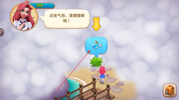 1、根據(jù)提示點擊氣泡,消耗資源清理障礙物,逐步探索場景。