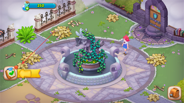 3、靠近被藤蔓覆蓋的建筑如噴泉雕塑,清理周圍的障礙物,解鎖建筑的更多細節(jié)。