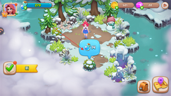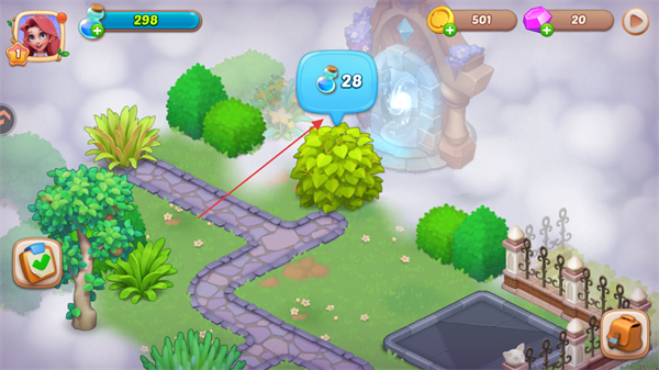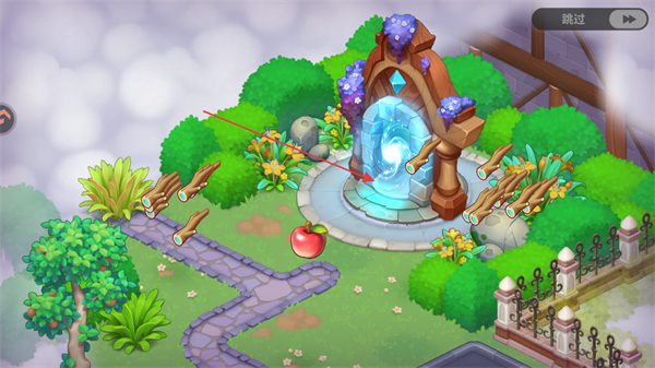 1、點(diǎn)擊場景中的氣泡,消耗資源清理植被等障礙物,解鎖新區(qū)域和建筑如魔法門。