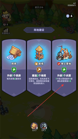 4、在陣地建設(shè)中選擇升級1個兵營,提升部隊數(shù)量上限。