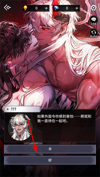 2、在劇情選擇界面,點擊好按鈕接受神秘角色邀請,這是觸發(fā)主線劇情分支的關(guān)鍵操作,選擇后將進入對應(yīng)劇情線,影響后續(xù)角色互動走向。