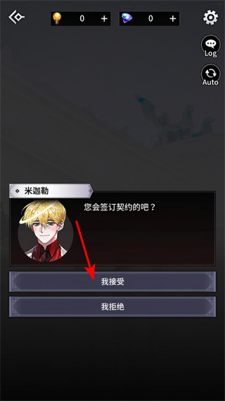 3、進入契約簽訂界面,點擊我接受按鈕與米迦勒簽訂契約,這是解鎖角色戰(zhàn)力的核心步驟,簽訂后可獲取米迦勒專屬技能,構(gòu)建基礎(chǔ)戰(zhàn)斗體系。