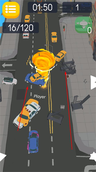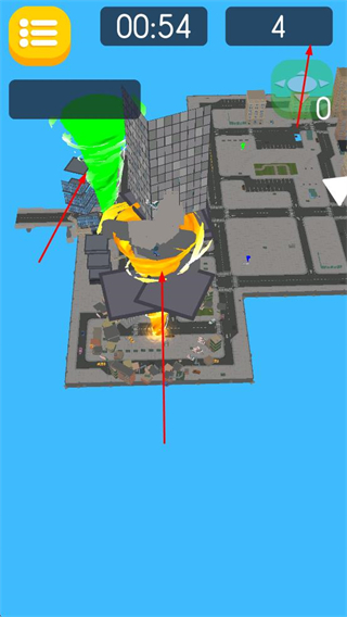 3、在城市道路場景中,操控龍卷風(fēng)破壞車輛、建筑設(shè)施等物體,積累破壞數(shù)量,挑戰(zhàn)更高破壞目標(biāo)。