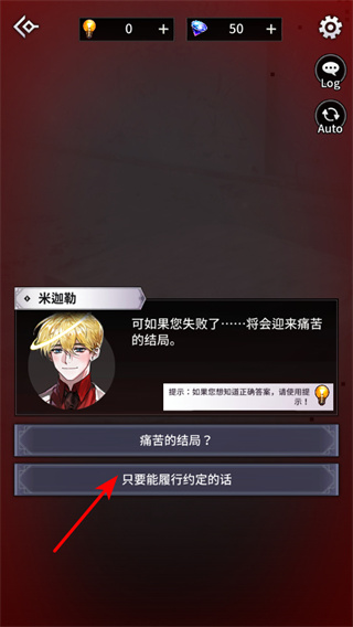 3、在米迦勒契約劇情界面,點(diǎn)擊只要能履行約定的話選項(xiàng),這是強(qiáng)化契約羈絆的關(guān)鍵操作,選擇后可推進(jìn)主線契約劇情發(fā)展,界面提示功能能更精準(zhǔn)把控劇情走向。