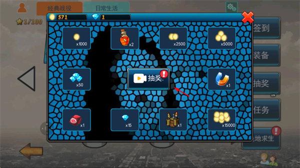 2、參與抽獎(jiǎng)活動(dòng),有機(jī)會(huì)獲得金幣、鉆石、道具等獎(jiǎng)勵(lì),積累游戲資源。