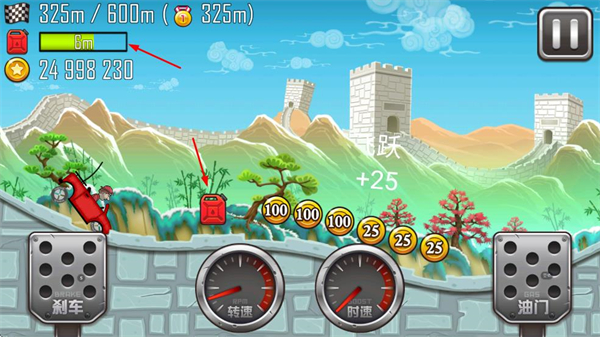 3、注意賽車油量,收集油桶補(bǔ)充油量,確保賽車能持續(xù)行駛。
