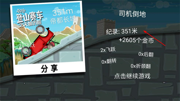 4、在行駛中完成飛躍等動(dòng)作,挑戰(zhàn)行駛距離紀(jì)錄,獲取大量金幣獎(jiǎng)勵(lì)。