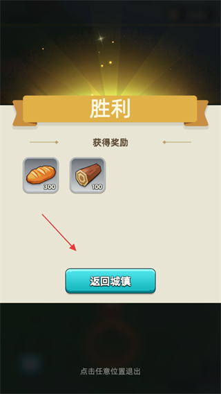 3、戰(zhàn)斗勝利后點(diǎn)擊返回城鎮(zhèn),結(jié)算獎(jiǎng)勵(lì)。