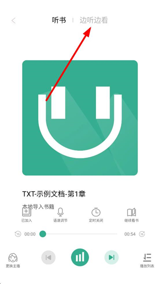 3、在聽書頁面,點擊邊聽邊看,進入邊聽邊看頁面。