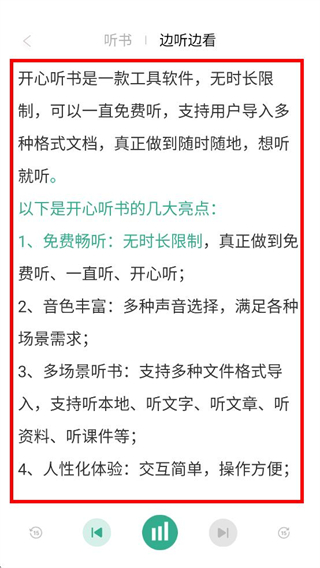 4、在邊聽邊看頁面,即可查看文檔內容并同時聽書。