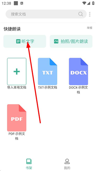 1、在開心聽書的首頁,點擊聽文字,進入聽文字頁面。