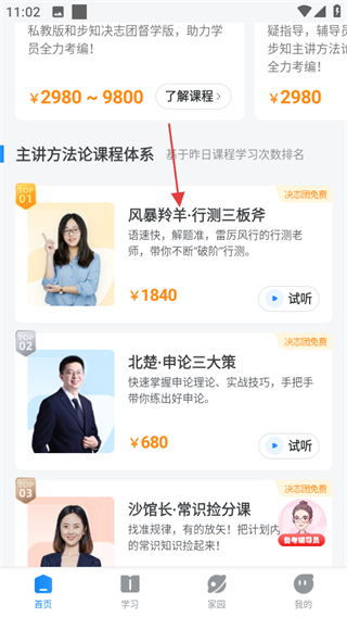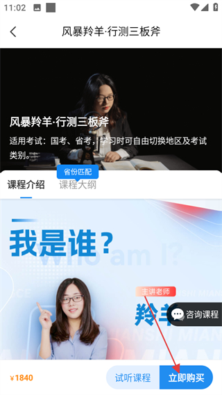 1、點擊心儀課程如風(fēng)暴羚羊行測三板斧,可進(jìn)入課程詳情頁面。