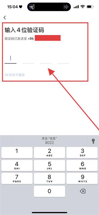 4、在驗證碼輸入頁面,輸入收到的驗證碼,即可完成賬號登錄。