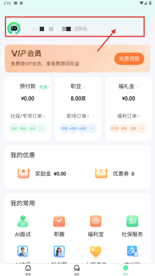 1、打開社保求職類應用,點擊底部我的選項,進入個人中心頁面。