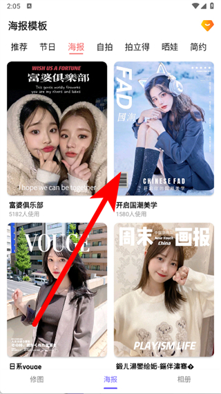 3、選擇心儀的海報(bào)模板后,點(diǎn)擊模板下方的做同款按鈕,進(jìn)入照片選擇流程。