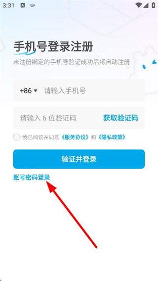 2、在登錄選擇頁面,點擊賬號密碼登錄,進入賬號密碼登錄頁面。