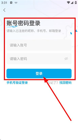 3、在賬號密碼登錄頁面,輸入賬號、密碼后,點擊登錄,完成賬號登錄。