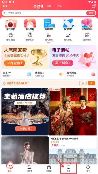 1、打開婚慶類應用,點擊底部商城選項,進入商城頁面。