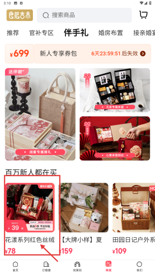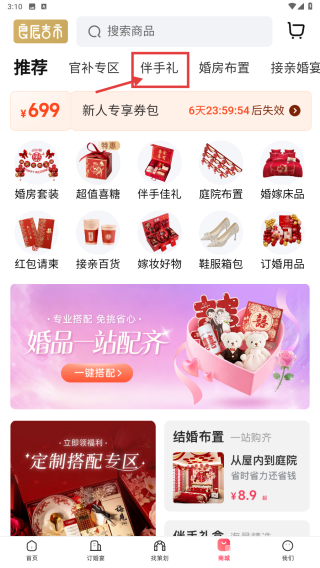 2、在商城頁面,點擊伴手禮分類,瀏覽婚慶伴手禮商品列表。