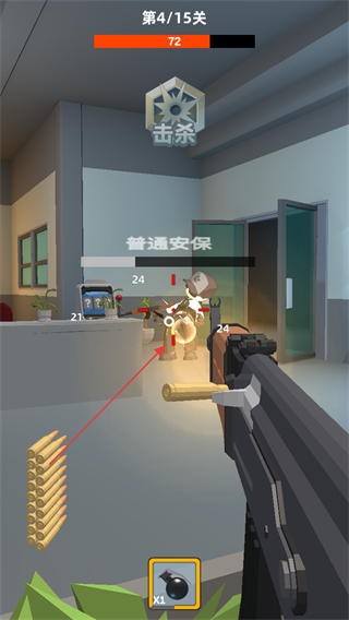 2、瞄準(zhǔn)普通安保敵人射擊,精準(zhǔn)打擊消滅目標(biāo)。