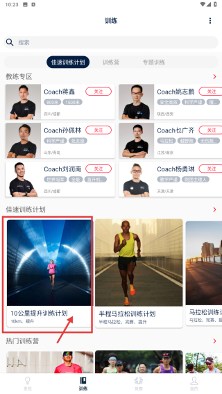 2、在訓(xùn)練頁面,點(diǎn)擊10公里提升訓(xùn)練計(jì)劃條目,進(jìn)入該訓(xùn)練計(jì)劃列表頁面。