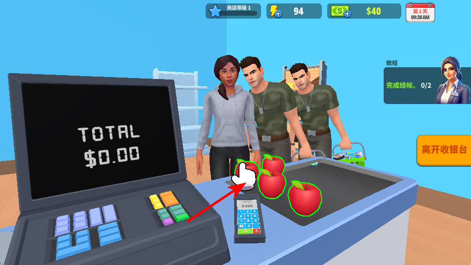4、為顧客服務時,點擊收銀臺,這是完成交易的基礎操作,通過收銀臺為顧客結算,可獲取收益并提升顧客滿意度。