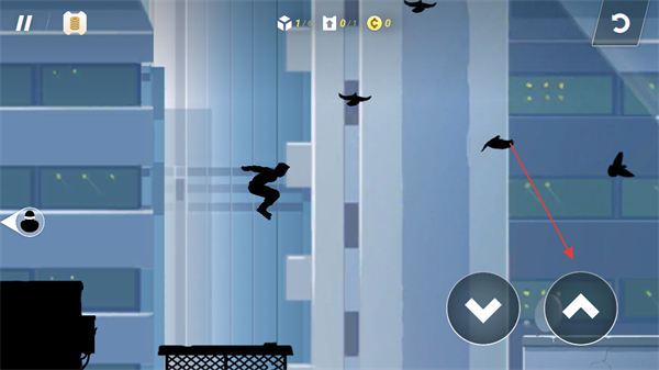 1、跑酷中點擊右下角向上的箭頭按鈕,可以跳躍懸崖或者攀爬過高墻。