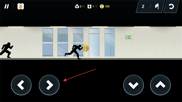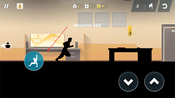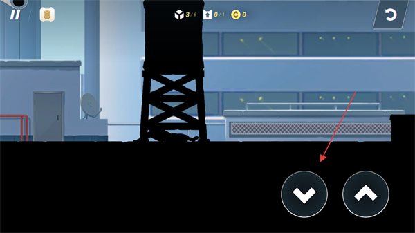 2、點擊右下角向下的箭頭按鈕,可以使角色滑鏟通過水塔等jian縫隙。