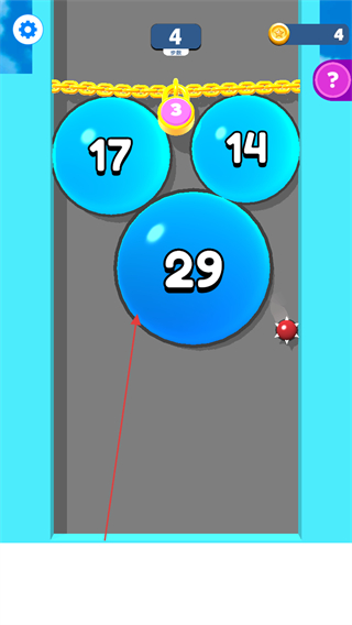 2、控制氣球避開紅色尖刺等障礙物,同時讓氣球合并,增大氣球數字和體積。