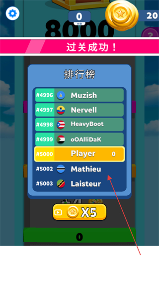 4、不斷挑戰(zhàn)關卡,提升分數,爭取在排行榜上獲得更高名次。