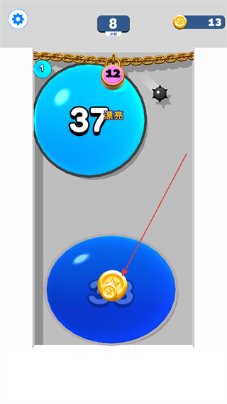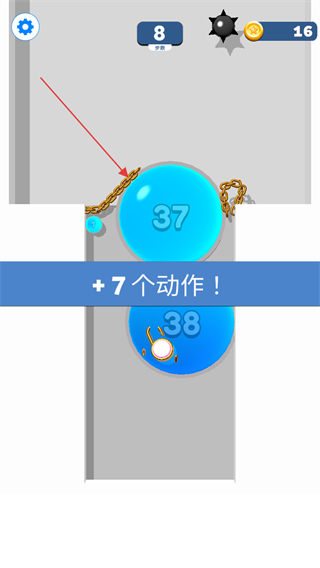 3、當氣球碰到上方的鏈條時,可觸發(fā)+7個動作!等獎勵,助力游戲進程。