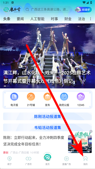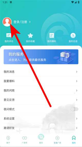 1、打開廣西日報客戶端,點擊底部導(dǎo)航欄的我的,進入個人中心頁面。