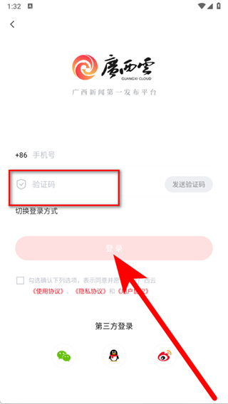 4、輸入收到的短信驗證碼后,點擊登錄按鈕,完成賬號登錄。