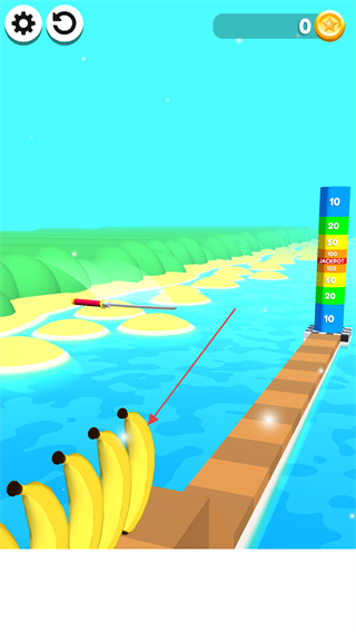 1、操控刀具在跑道上移動(dòng),砍擊蘋果、香蕉等水果,收集水果以增加分?jǐn)?shù)和金幣。