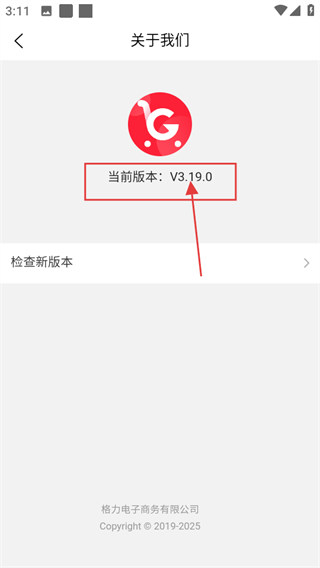 4、在關(guān)于我們頁(yè)面,可查看當(dāng)前APP版本信息,如當(dāng)前版本V3.19.0。