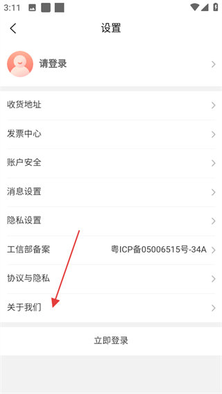 3、在設(shè)置頁(yè)面,點(diǎn)擊關(guān)于我們可進(jìn)入關(guān)于我們頁(yè)面。