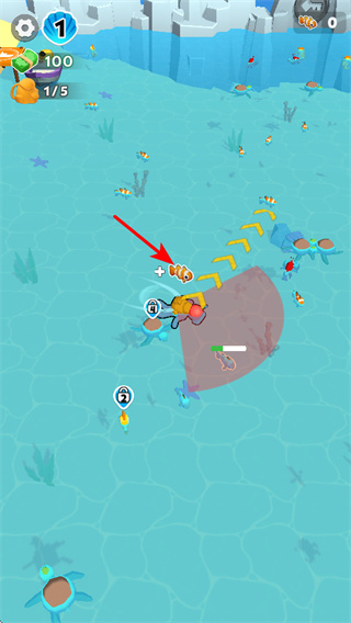 4、在水下區(qū)域,操控角色捕捉魚類,這是獲取資源的基礎操作,捕捉后可積累魚類資源,推進游戲進程。