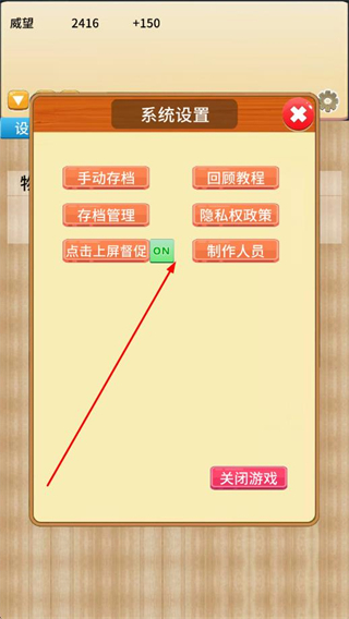 4、點(diǎn)擊設(shè)置,進(jìn)入系統(tǒng)設(shè)置界面,可進(jìn)行手動(dòng)存檔、回顧教程等操作,保障游戲進(jìn)程。