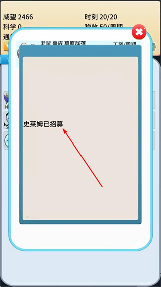 4、招募成功后,會顯示員工已招募的提示,此時新員工將加入魔王城的經(jīng)營團隊。