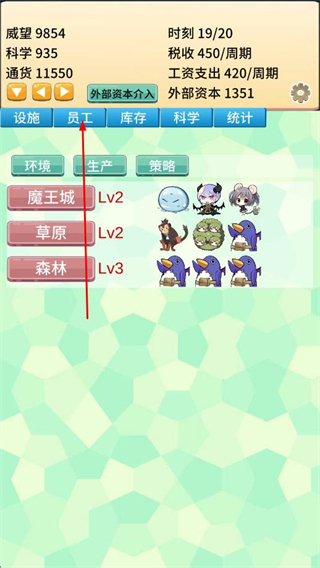 設(shè)施和員工不是孤立的,而是協(xié)同發(fā)展。升級魔王城、草原、森林等設(shè)施,不僅能解鎖新員工,還能提升現(xiàn)有員工的工作效率。經(jīng)營時需要同時考慮設(shè)施和員工的發(fā)展。