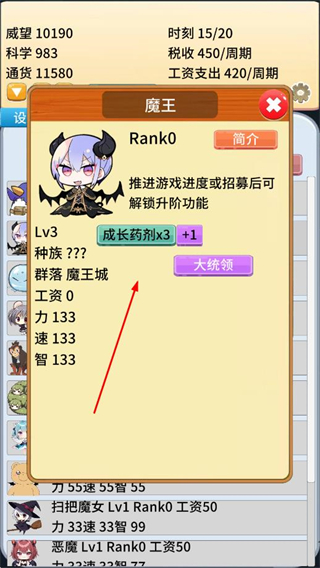 4、使用完成長藥劑后,魔王的力、速、智屬性也會相應提高。
