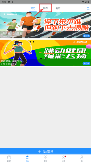 2、在活動(dòng)頁面,點(diǎn)擊推薦分類選項(xiàng),瀏覽推薦活動(dòng)列表。