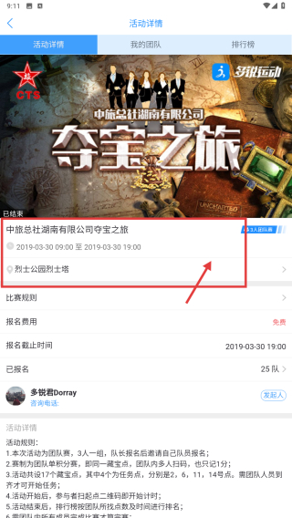 4、在活動(dòng)詳情頁,即可查看該活動(dòng)的地點(diǎn)、時(shí)間、規(guī)則等詳細(xì)信息。