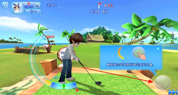 2、觸摸高爾夫球圖標(biāo)精準(zhǔn)確定揮桿力量,好好把握擊球時(shí)機(jī),將球有力擊出,朝著目標(biāo)方向穩(wěn)步前進(jìn)。