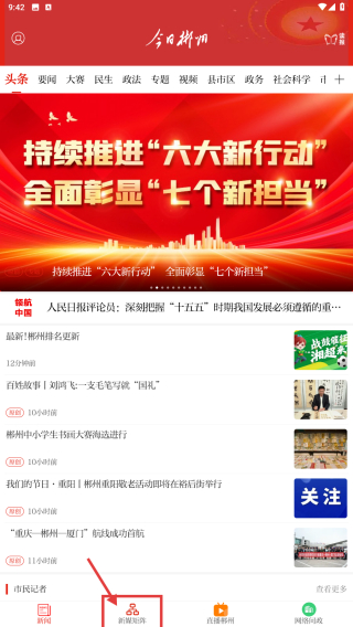 1、打開新聞?lì)悜?yīng)用,點(diǎn)擊底部新媒體矩陣選項(xiàng),進(jìn)入新媒體矩陣頁面。