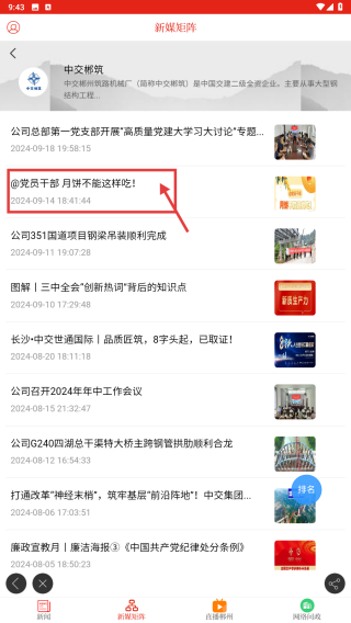 3、在市政交通類單位列表里,找到中交郴筑單位條目,點(diǎn)擊進(jìn)入單位新聞頁面。